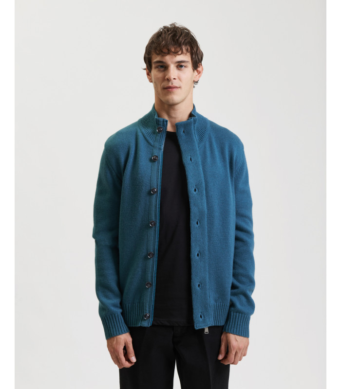 Knitted cardigan with funnel neck