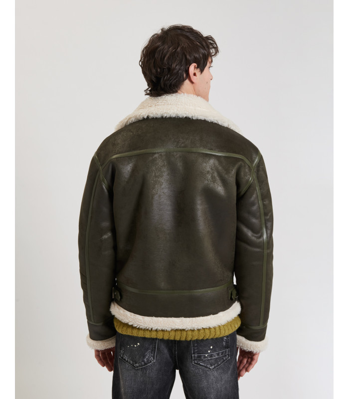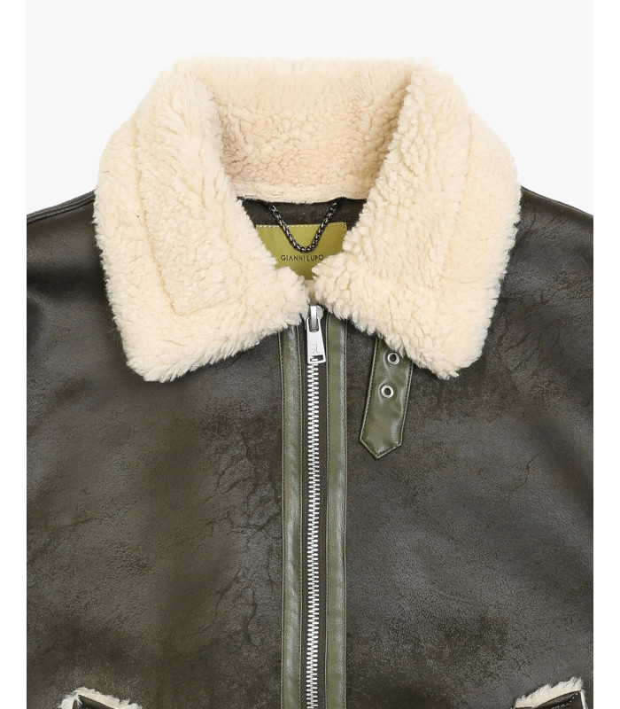 Wide faux-shearling collar - two-way zip fastening - slanted side pockets - contrast shearling trims inside and along edges - faux-shearling details on cuffs and hem