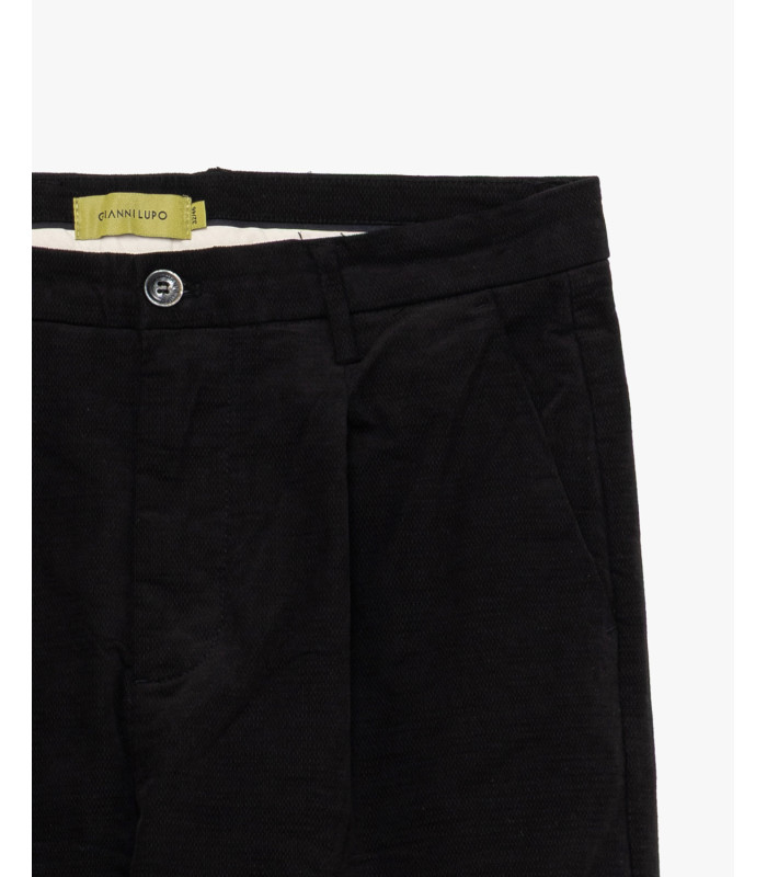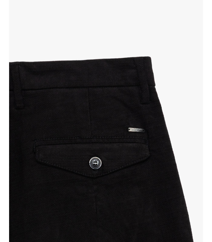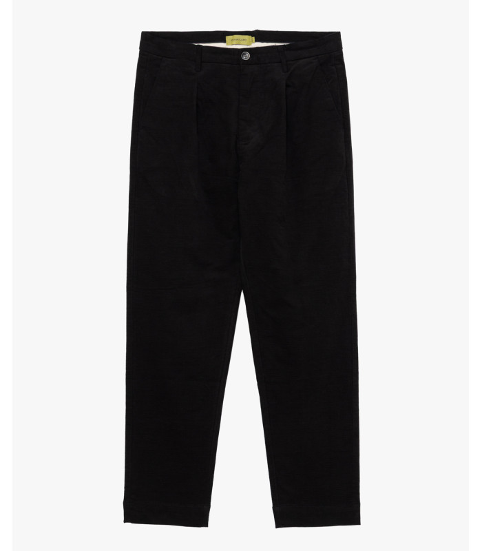 Regular waist with belt loops - carrot cropped fit - slanted pockets - front pleats - back flap pockets with button