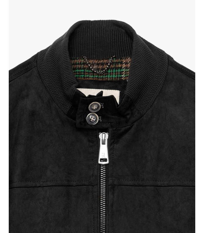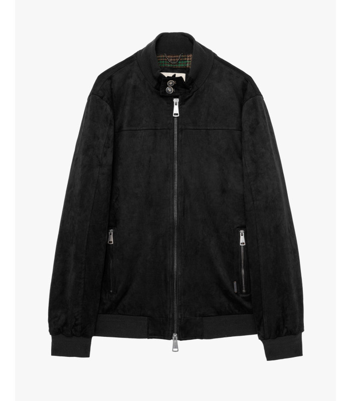 Jacket in suede-effect fabric, soft to the touch. Features a front zip fastening with double button closure at the collar, two zipped side pockets, and ribbed knit details on collar, cuffs, and hem for a snug, comfortable fit. zip fastening - zipped pockets - ribbed collar, cuffs and hem