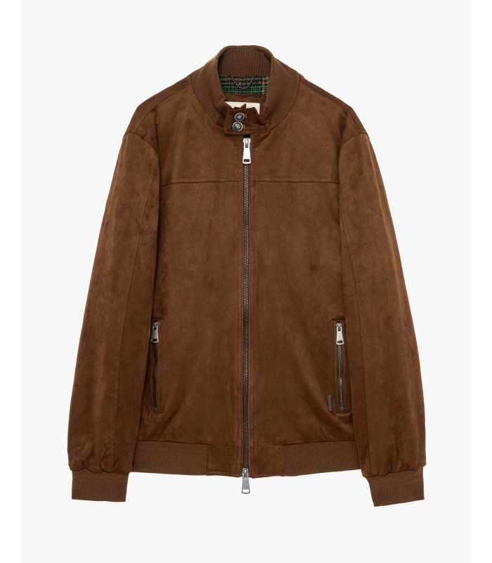 Jacket in suede-effect fabric, soft to the touch. Features a front zip fastening with double button closure at the collar, two zipped side pockets, and ribbed knit details on collar, cuffs, and hem for a snug, comfortable fit. zip fastening - zipped pockets - ribbed collar, cuffs and hem
