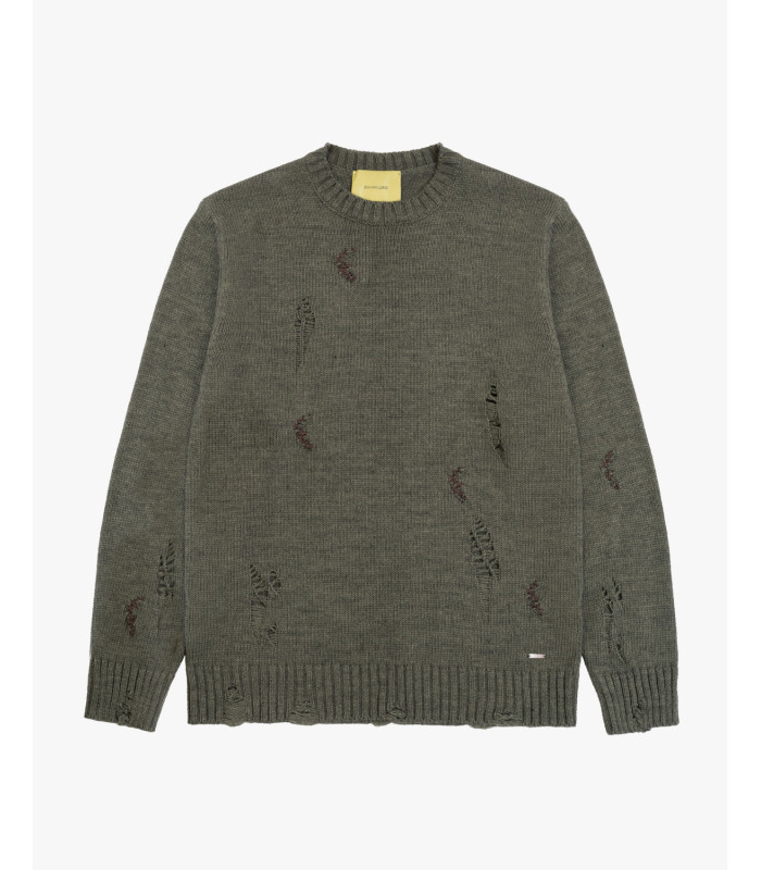 Distressed crew-neck sweater in...