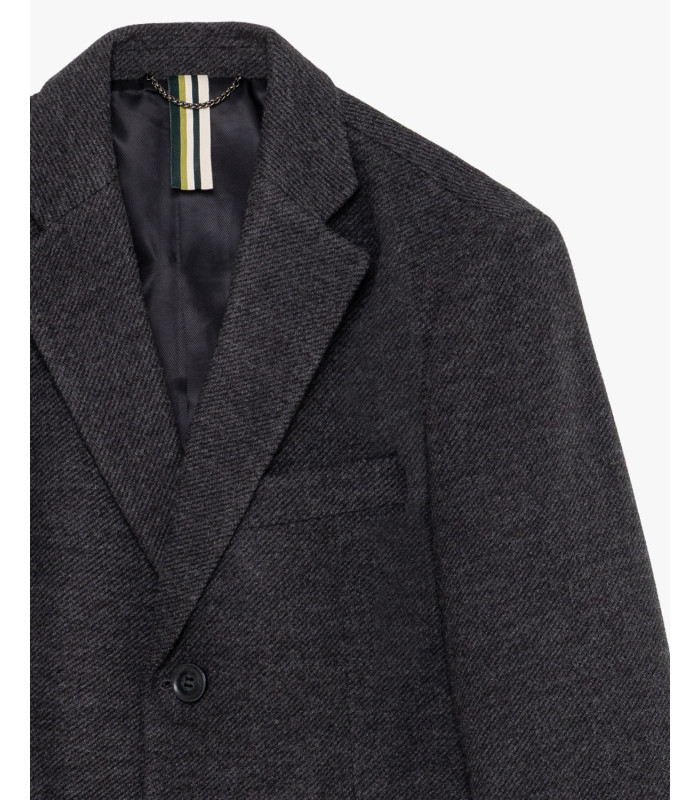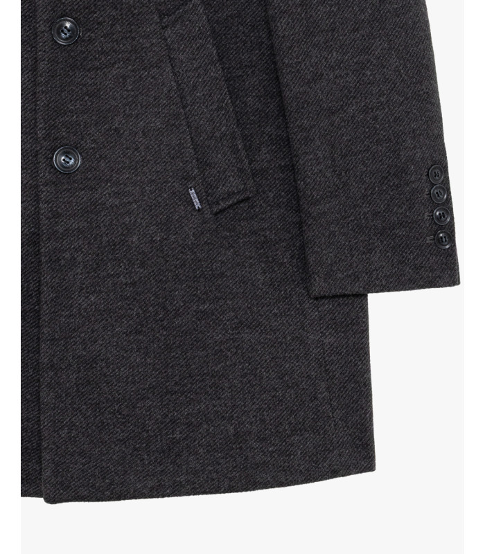 Cappotto elegante dal taglio classico con rever, pensato per affrontare l'inverno con stile. Dotato di una chiusura frontale a tre bottoni, presenta due tasche laterali a filetto, un taschino sul petto e polsini con quattro bottoni decorativi. chiusura con bottoni - tasche frontali a filetto - taschino sul petto - polsini con bottoni