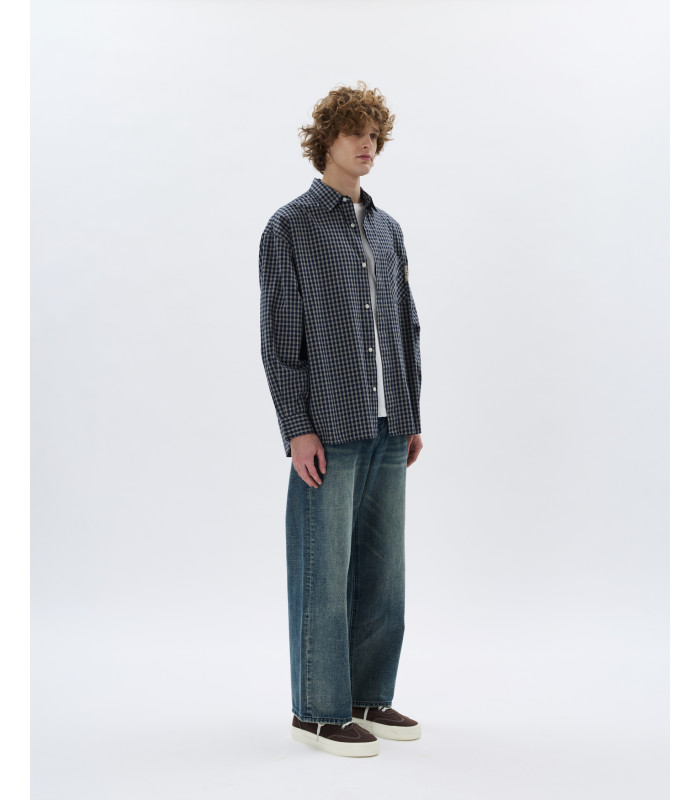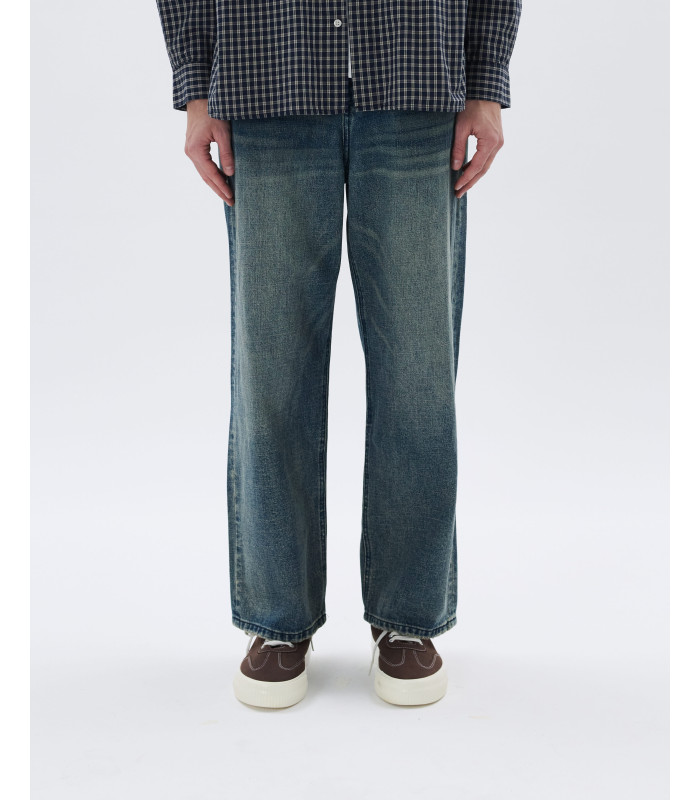 Vita regolare con passanti - chiusura con bottone e zip - tasche posteriori applicate - lavaggio medio con leggere baffature - cuciture a contrasto - Wide leg fit
