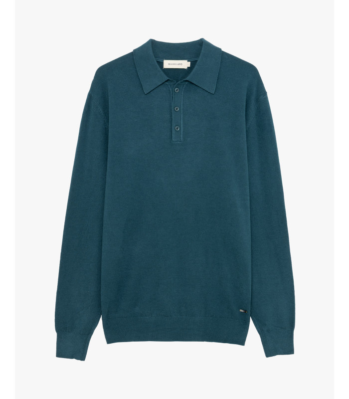 colletto polo - chiusura a tre bottoni - maniche lunghe con polsini a coste - slim fit