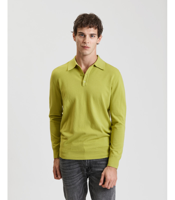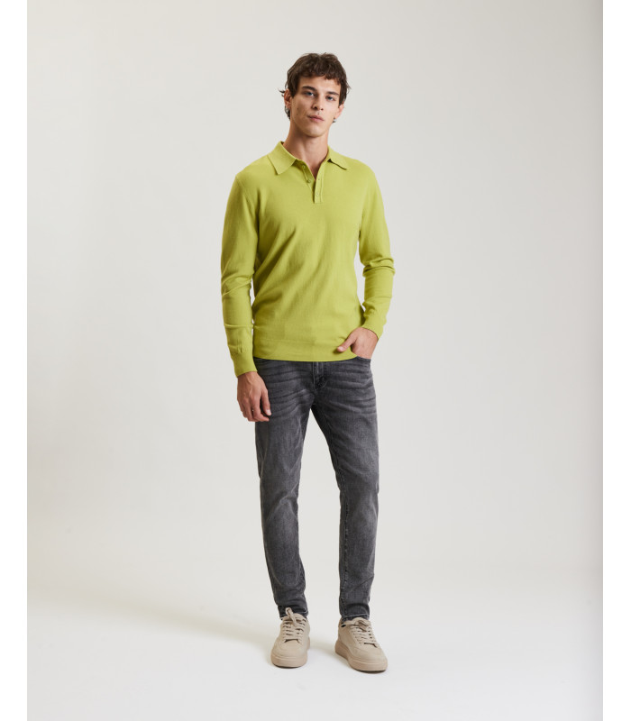 colletto polo - chiusura a tre bottoni - maniche lunghe con polsini a coste - slim fit