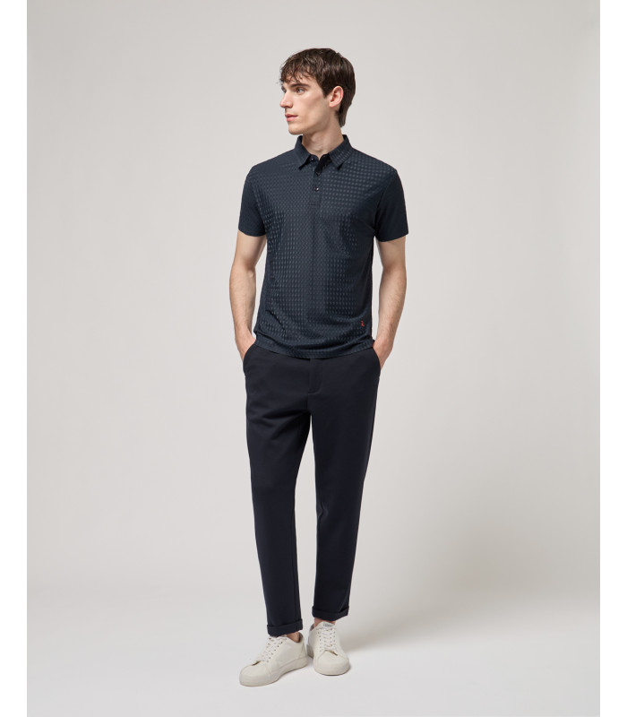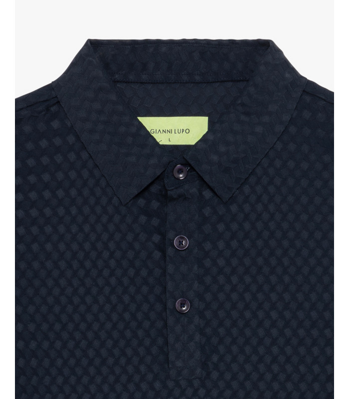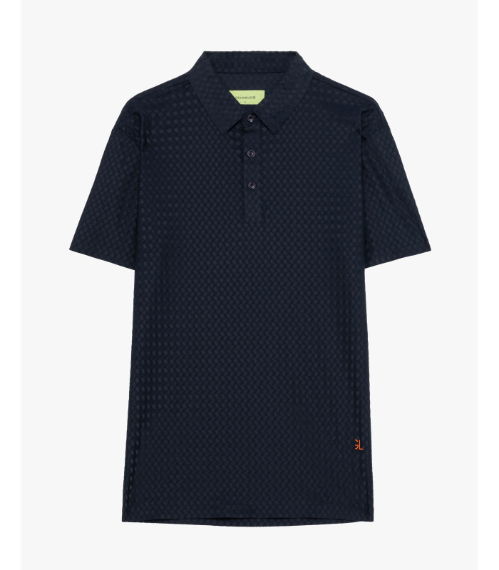Collo classico con chiusura a tre bottoni - tessuto tecnico - fondo dritto - patch logo sul fondo.